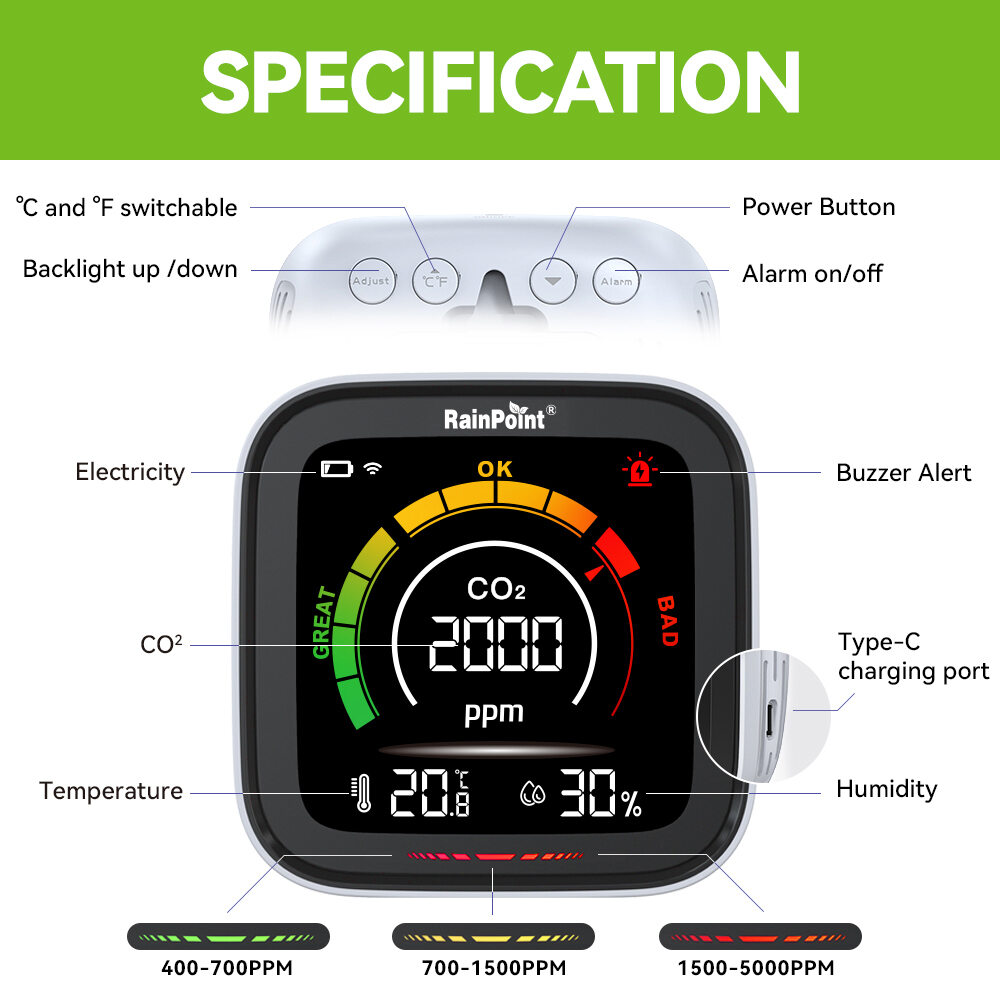 RainPoint Smart Air Quality Meter (Co2 Detector)